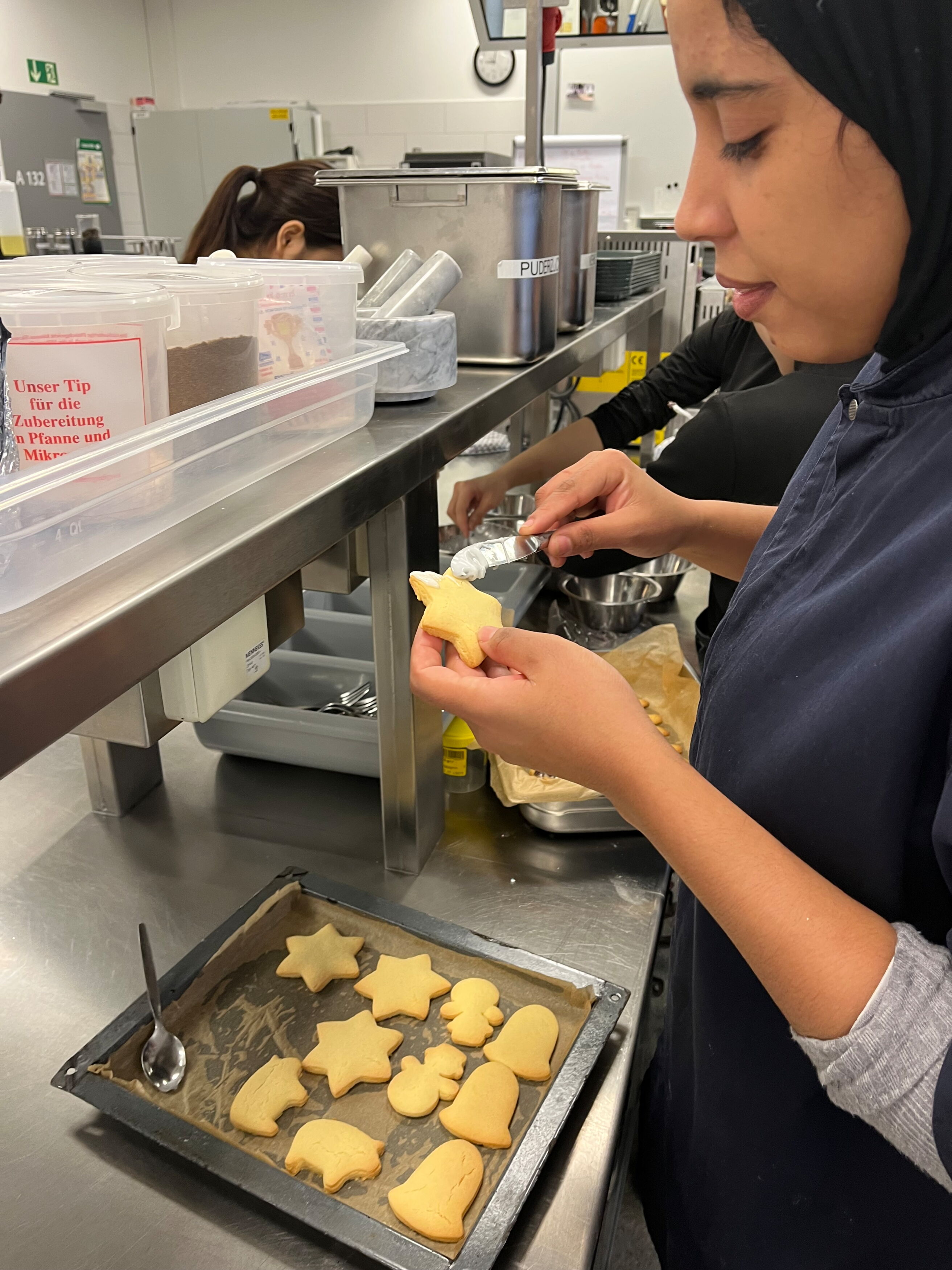 Die Fachkräfte für Gastronomie (Unterstufe) bereiteten in der vergangenen Woche eine große Auswahl an Weihnachtskeksen zu. Mit handwerklichem Können und viel Liebe zum Detail entstanden zahlreiche köstliche Plätzchen, die anschließend sorgfältig verpackt wurden.