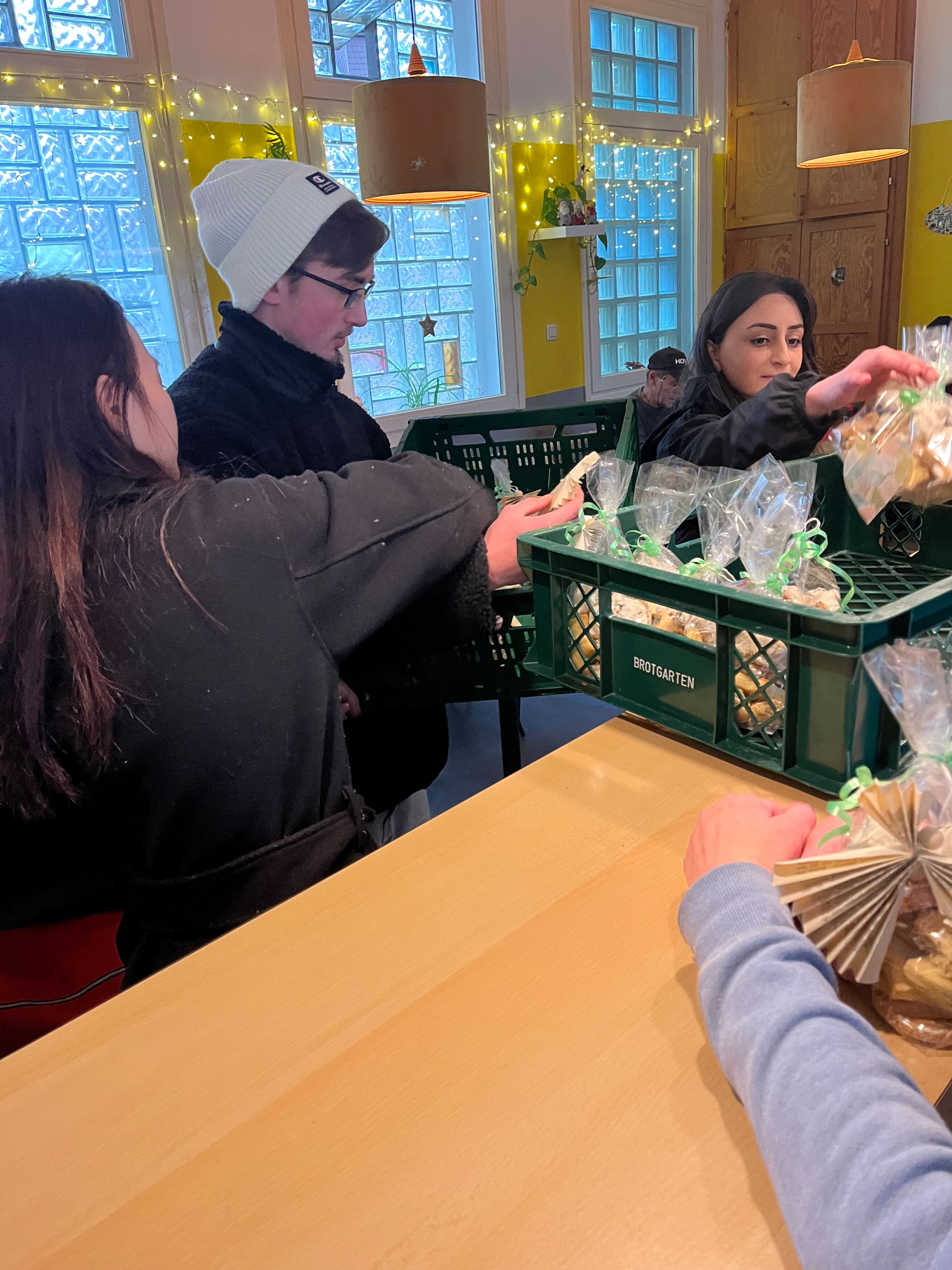 Unterstützt wurde diese Aktion von der Berufsintegrationsklasse BIK 25, die kreative Weihnachtsanhänger gestaltete. Ob Engel, Herzen oder andere weihnachtliche Motive – die mit großer Sorgfalt gebastelten Anhänger verliehen jeder Kekstüte eine persönliche Note.