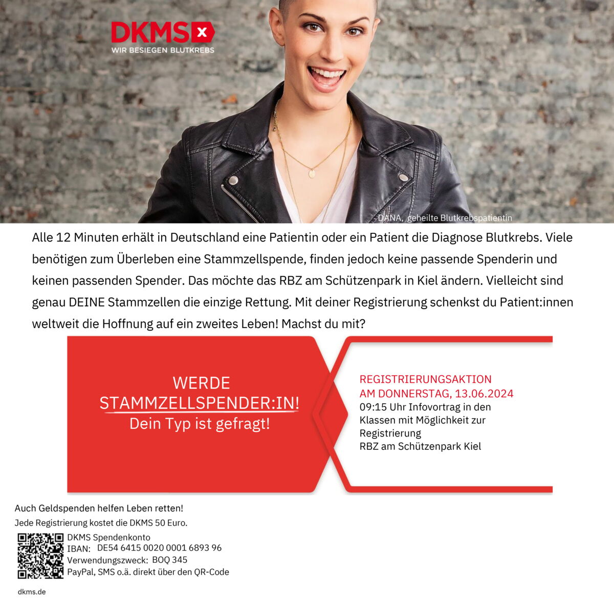 Herzlich Einladung zur DKMS-Registrierungsaktion für Stammzellenspender, die von der FOS23 organisiert wird. Die Aktion findet am 13.06.2024 im RBZ am Schützenpark statt. Um eventuelle kleinere Wartezeiten so angenehm wie möglich zu gestalten, wird gegen eine kleine Spende Kuchen verkaufen.