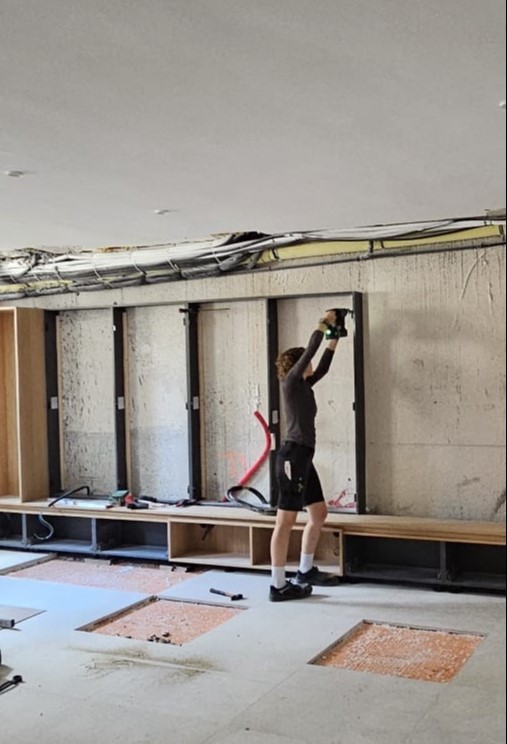 Schon in der ersten Woche durften wir beim Innenausbau einer großen (wirklich sehr großen!) spanischen Finca mithelfen. Dort haben wir Schrankwände, Schiebetüren und eine begehbare Ankleide montiert. Die größte Kommunikationshürde war dabei übrigens nicht die spanische Sprache, sondern der schwäbische Dialekt der beiden Kollegen, denen wir assistierten. Die Finca wurde komplett neu gebaut – doch während man sich in Deutschland meist über Maßhaltigkeit und gerade Wände bei Neubauten freut, gab es hier so manche schiefe Decke und andere bauliche Herausforderungen. Mit ein wenig Gelassenheit, Unterstützung durch andere Gewerke und kleineren Nacharbeiten ließen sich diese Probleme aber gut lösen.