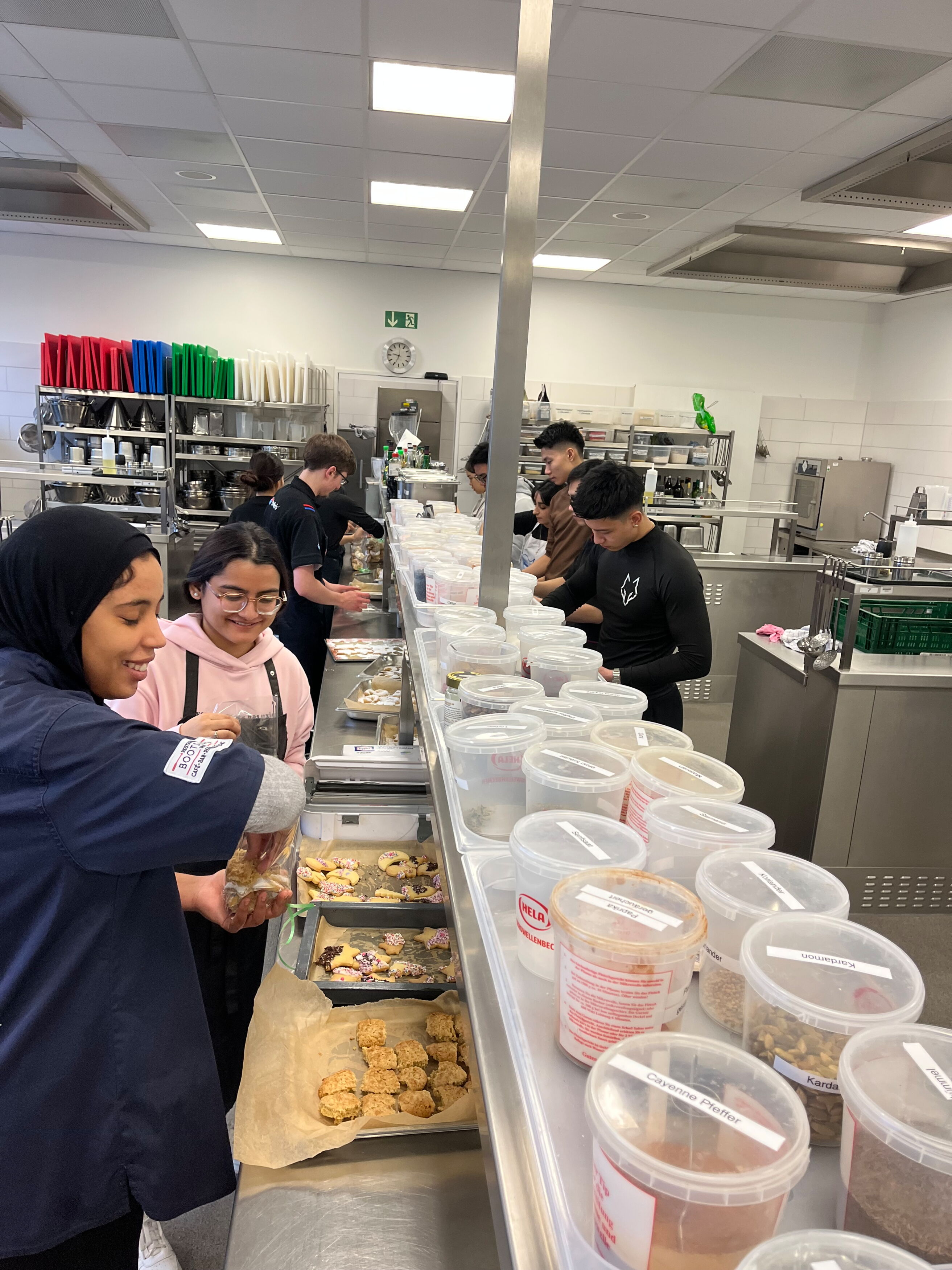 Die Fachkräfte für Gastronomie (Unterstufe) bereiteten in der vergangenen Woche eine große Auswahl an Weihnachtskeksen zu. Mit handwerklichem Können und viel Liebe zum Detail entstanden zahlreiche köstliche Plätzchen, die anschließend sorgfältig verpackt wurden.