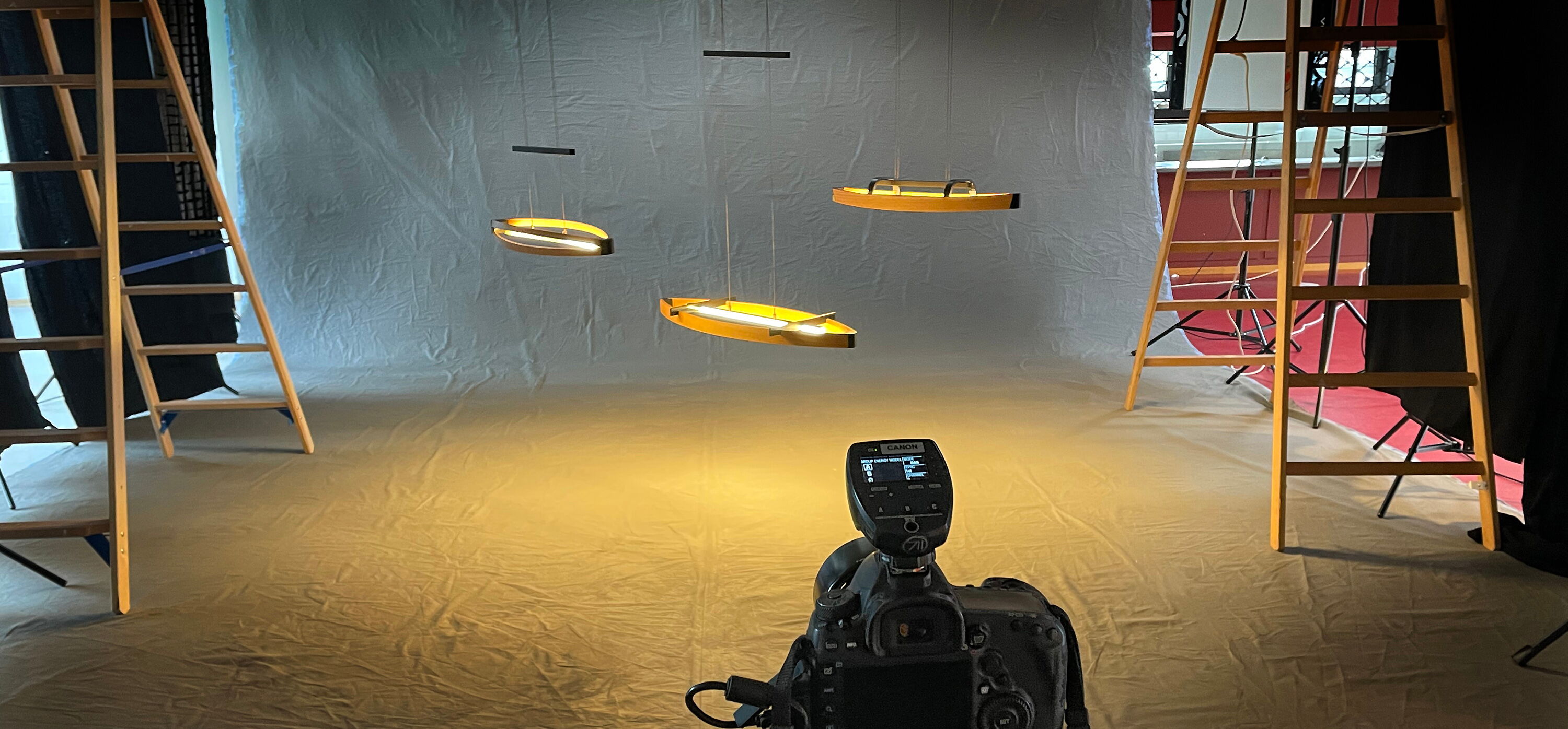 Aus einem Upcyclingprojekt ausrangierter OHP-Wagen entstanden als Nebenprodukt formverleimte Reststücke in Eiche, zu schön und anregend, um diese nicht noch einmal in Szene zu setzen. Im kreativen Prozess wurden Verbindungsideen entwickelt und diese mittels 3D-Passteilen in Hängeleuchten realisiert - die LICHTSCHIFFE entstanden.