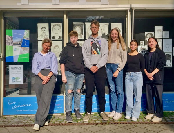 Wir freuen uns Kunstwerke aus dem RBZ am Schützenpark an einem prominenten Ort außerhalb der Schule zu zeigen. Für das professionelle Reinigen der Fenster im Vorfeld der Ausstellung, gilt ein besonderer Dank außerdem den Auszubildenden des Bildungsgangs Gebäudereinigung unserer Schule.