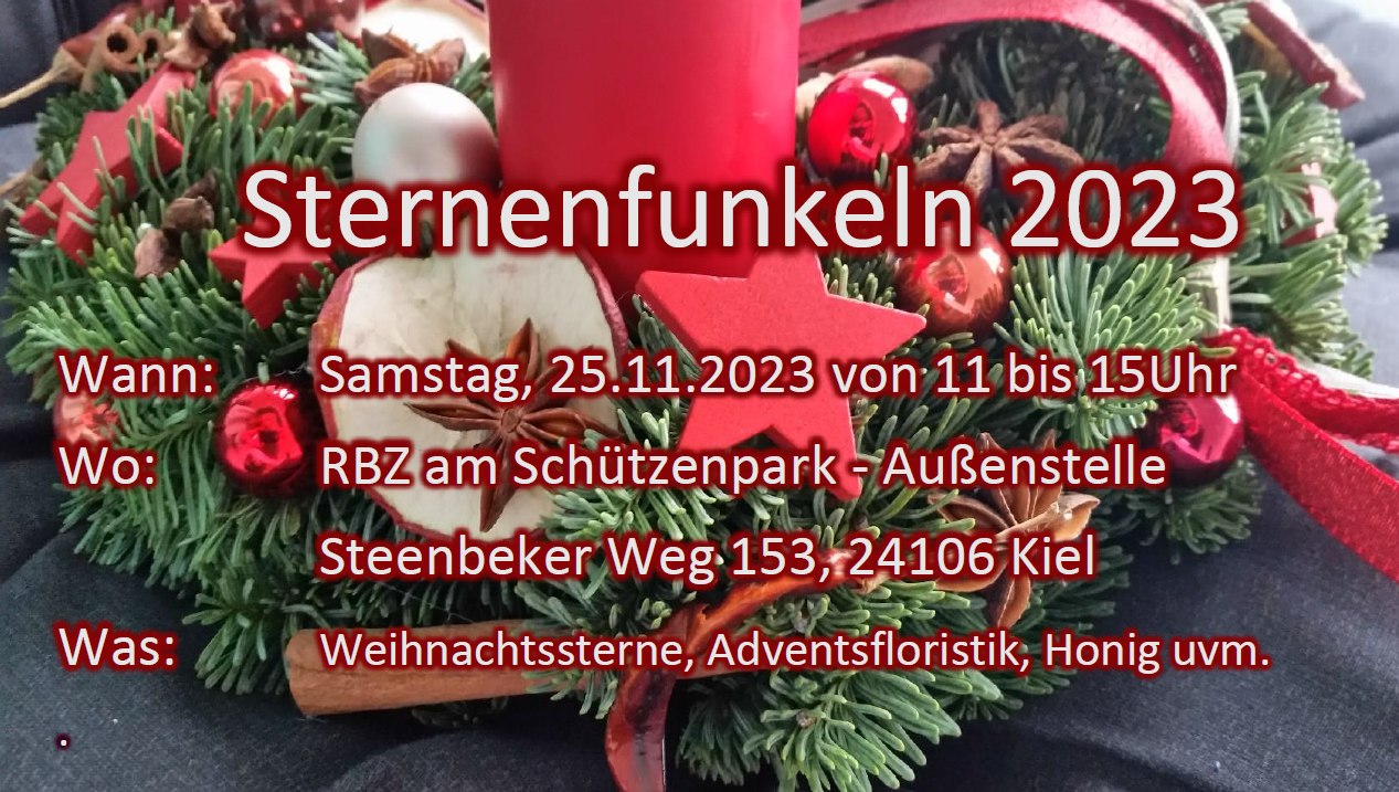 Herzliche Einladungzum Sternenfunkeln 2023 am Samstag, 25.11.2023 von 11 bis 15 Uhr in der Außenstelle Steenbek des RBZ am Schützenpark.