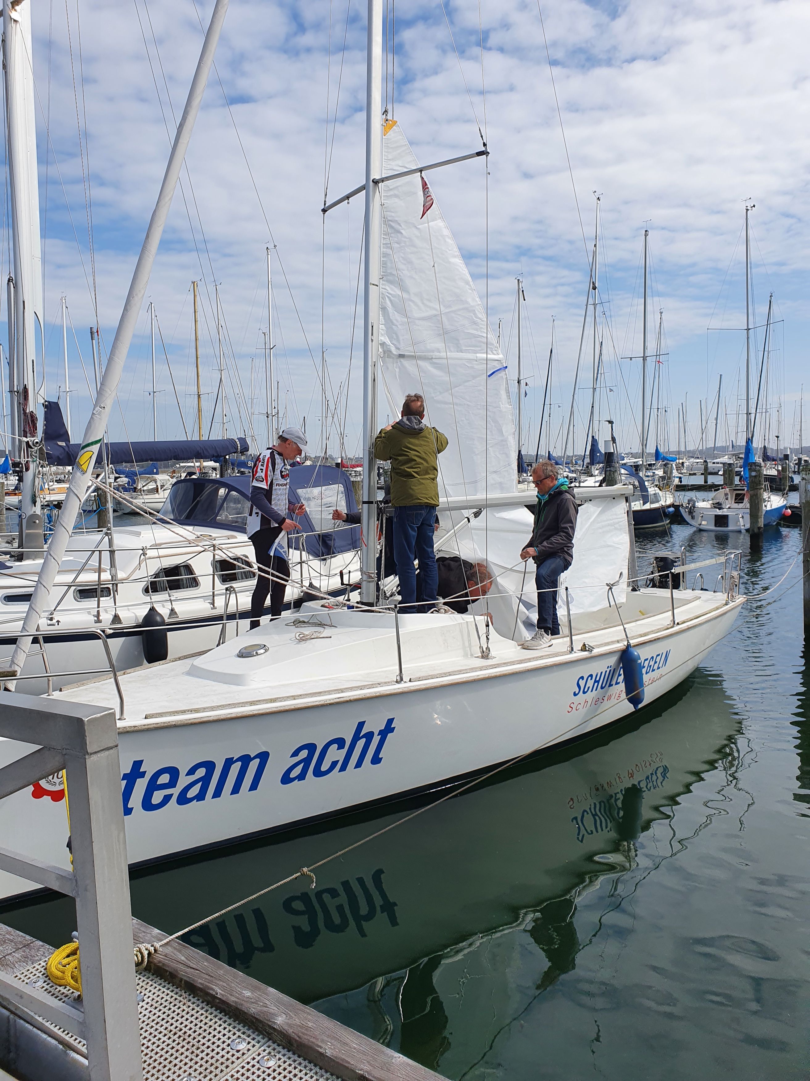 Nach der Corona-bedingten Pause im vergangenen Schuljahr wurden die Team 8-Segelboote bei einem gemeinsamen Arbeitseinsatz aller am Projekt beteiligten Schulen im Sportboothafen Stickenhörn seeklar gemacht.